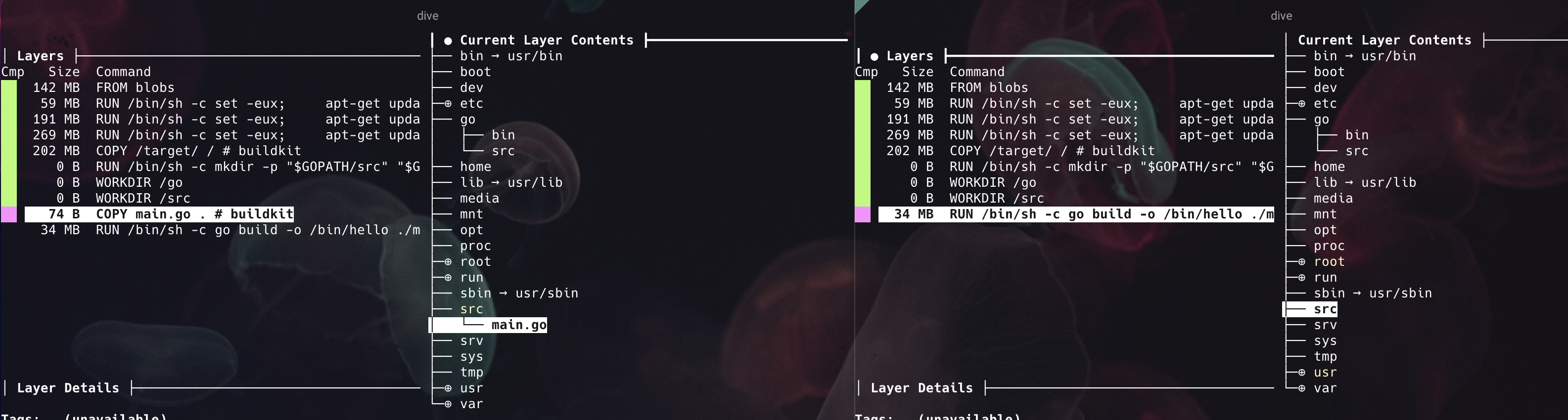 定期的に image の中身を dive で確認し、必要ないものが入っていないか精査することをお勧めします 🙆