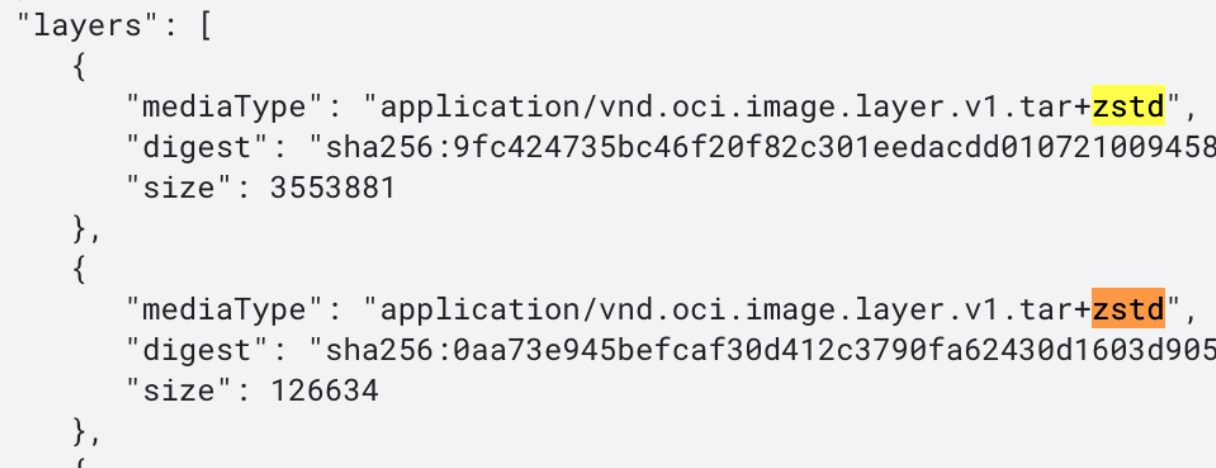 次に、レイヤーの圧縮手法についてです。 先述した通り、通常レイヤーは Gzip 圧縮されますが、実は zstd で圧縮することもできます。